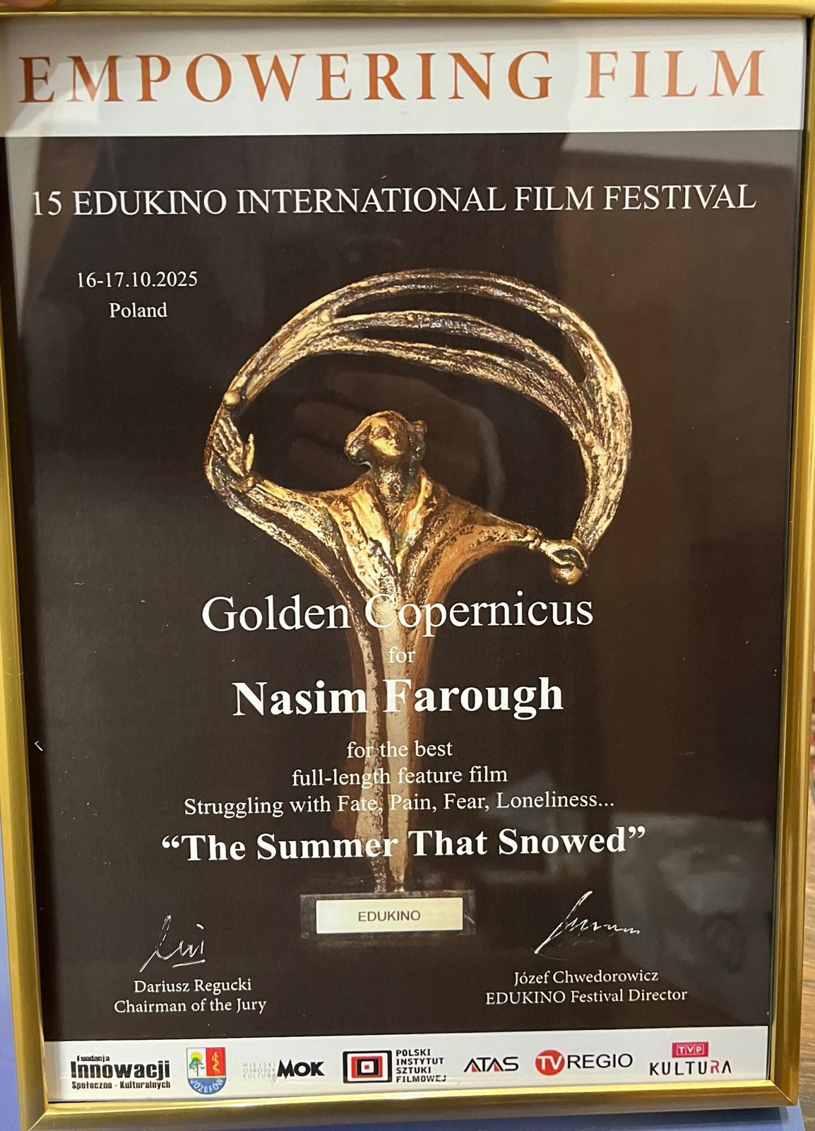 فیلم سینمایی «تابستانی که برف آمد» به کارگردانی نسیم فروغ، موفق به کسب جایزه معتبر «کوپرنیک طلایی» بهترین فیلم بلند داستانی از پانزدهمین جشنواره بینالمللی فیلم ادوکینو (EDUKINO) ورشو در لهستان شد.